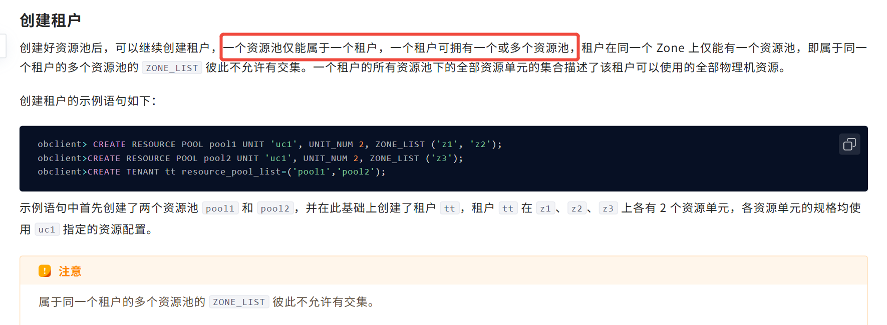 create tenant obmysql resource_pool_list=(‘pool_1’,‘pool_2’,‘pool_3’);