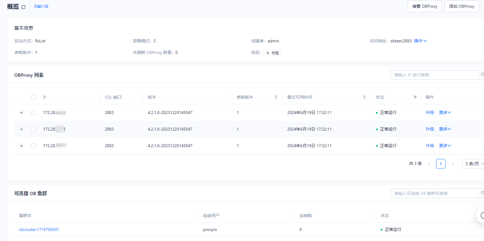 [root@ob77 log]# mysql -hobtest -P2883 -uroot@sys#obcluster -p