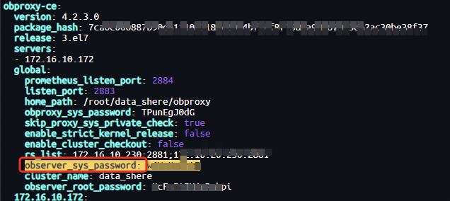 在配置文件的obproxy-ce模块中添加这个observer_sys_password