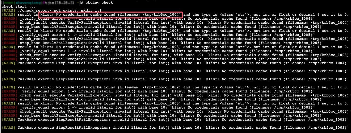 因为我们的服务器使用到了kerberos认证,obdiag/OCP ssh到我们的服务器上经常因为额外的klist: No credentials cache found (filename: /tmp/krb5cc_1003)输出导致一些检查失败,OCP会因为这个导致服务器导入失败。