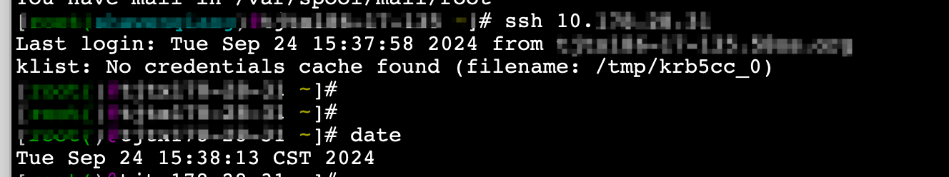 klist: No credentials cache found (filename: /tmp/krb5cc_1003) Tue Sep 24 15:10:15 CST 2024