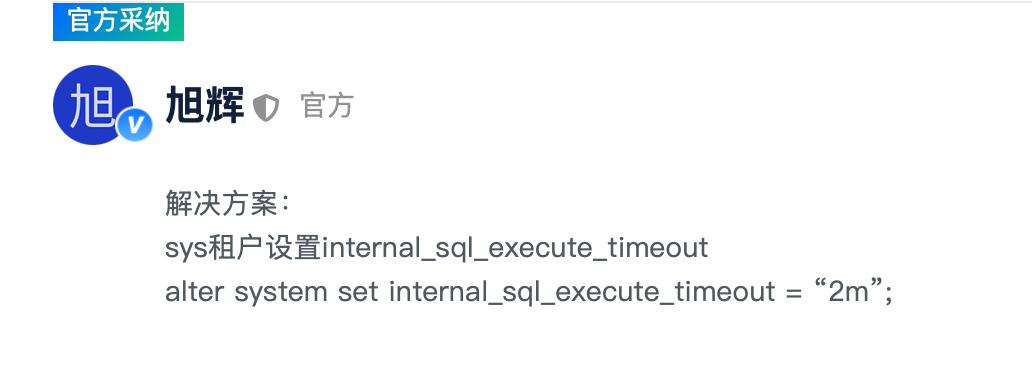 alter system set internal_sql_execute_timeout = “2m”;