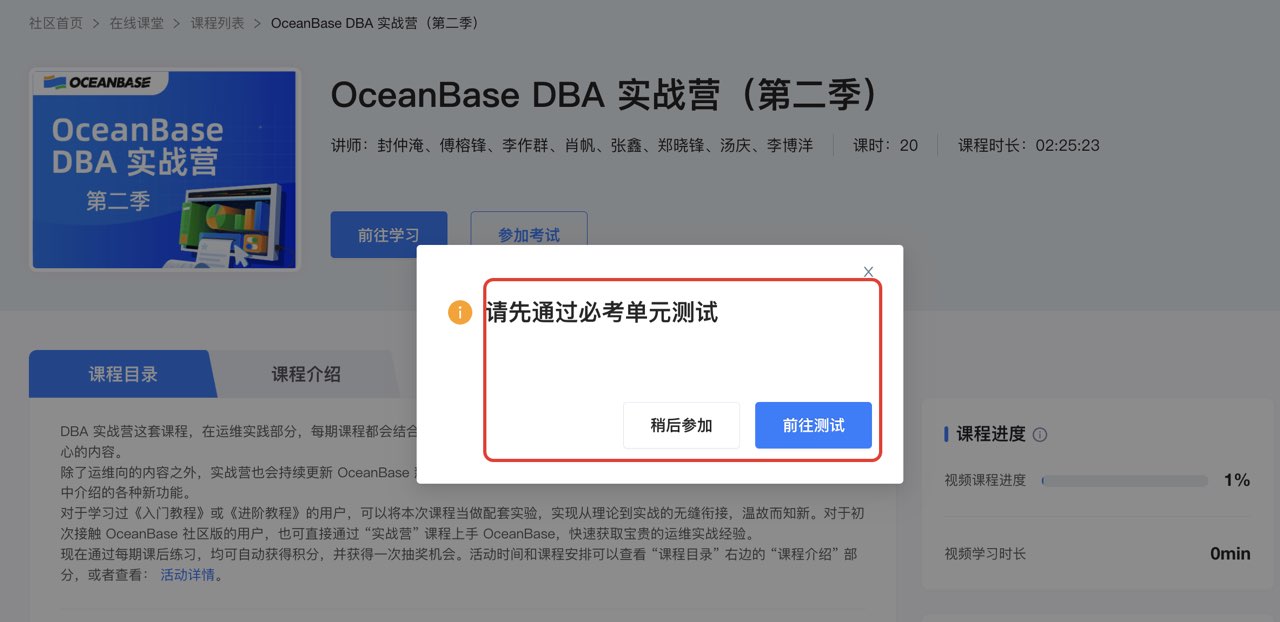 《OceanBase DBA 实战营(第二季)》的结课考试将于 9 月 22 日(周一)上午 10:00 开启!