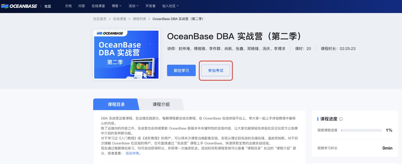 【重要通知】《OceanBase DBA 实战营(第二季)》结课考试及 OBCA / CP 考试券获取攻略来咯~