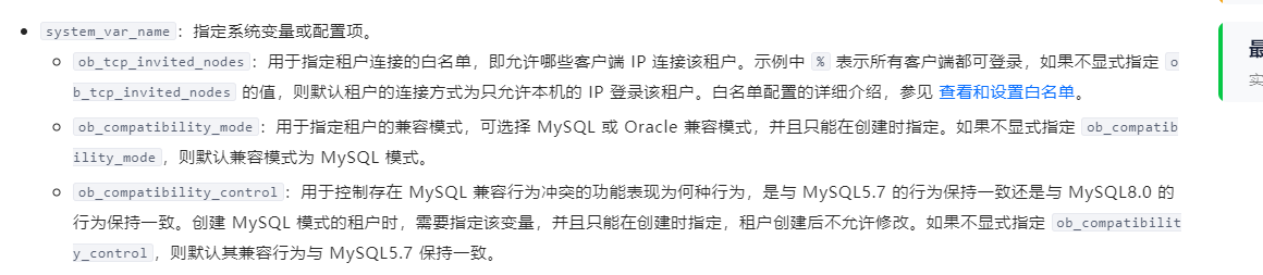 obclient [oceanbase]> show parameters like ‘ob_tcp_invited_nodes’;