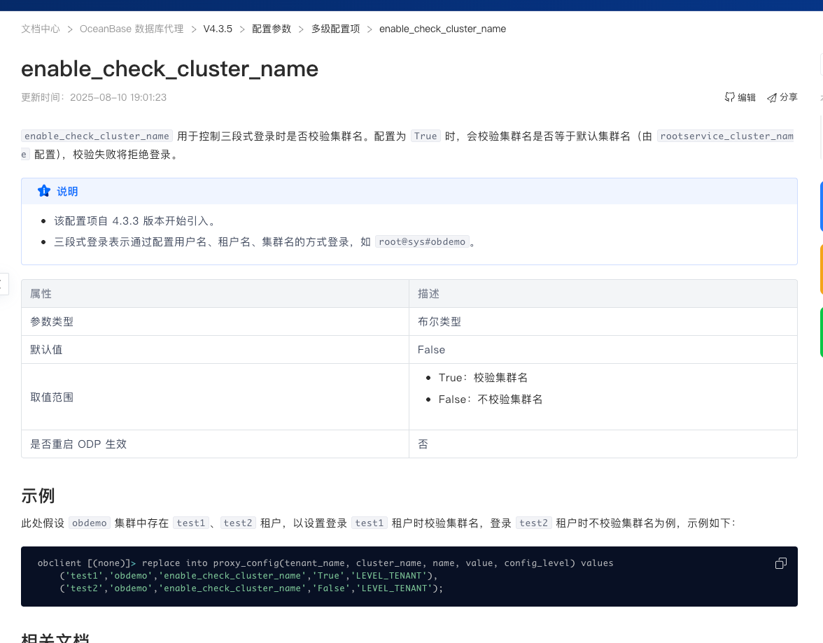 mysql -h10.96.2.111 -P2883 -u"root@guance#oceanbase" -p 可以登录