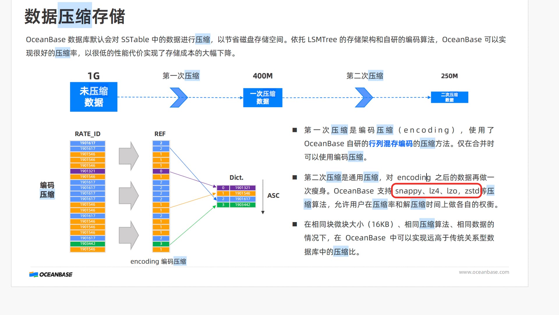 答案是C吧,OceanBase自研的行列混存编码的压缩方法,简称encoding