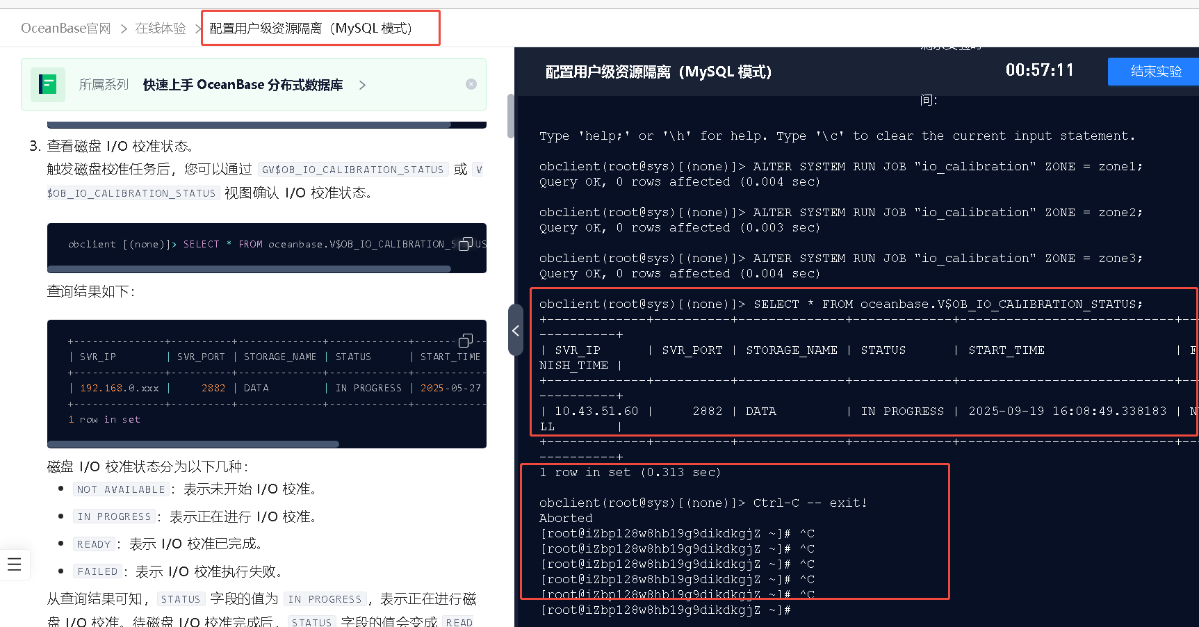 集群在线体验环境中配置用户级资源隔离(MySQL 模式)复制就退出