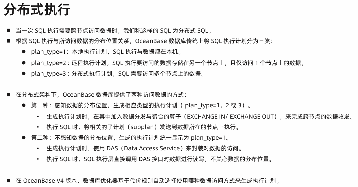 ppt中从章节“OB 架构与传统数据库的差异”,只找到这么一段描述“数据切主,可能出现之前本地执行计划(所访问的数据在本机)变为远程执行计划或者分布式执行计划的问题”,从这里能分析出正确答案马?