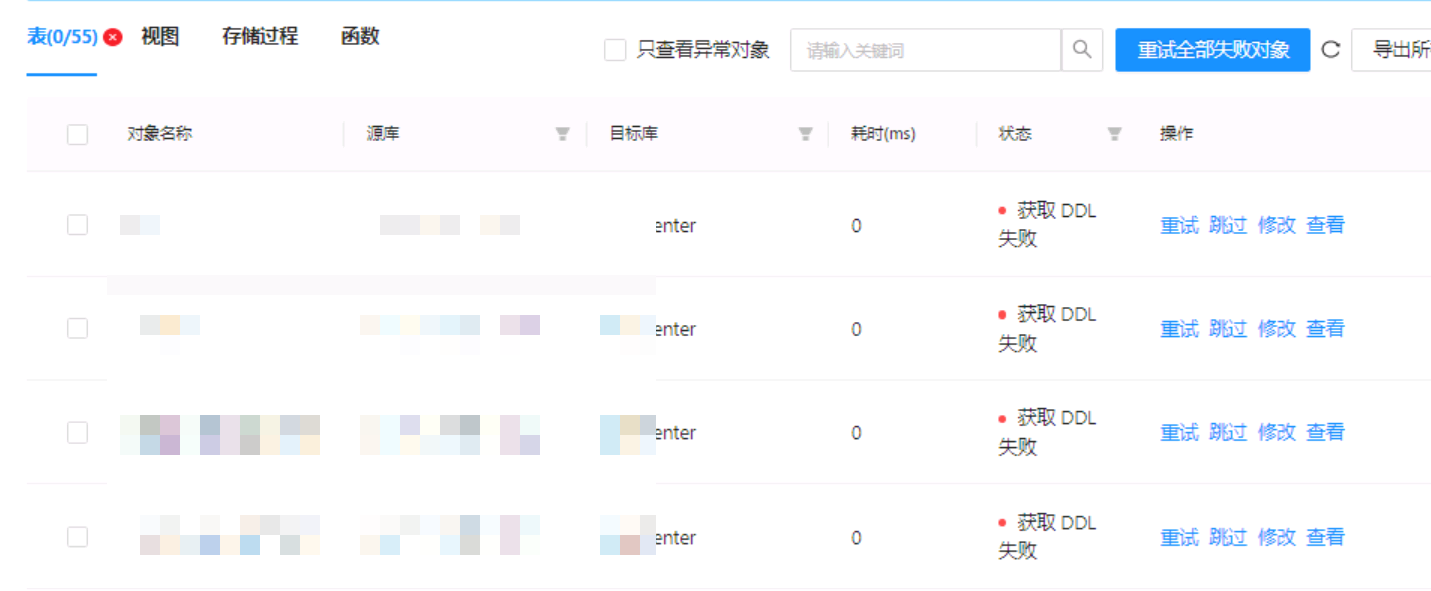 用社区版的oms 同步 企业版的数据到社区版 4.3.5.1 → 4.3.5.4 同步表结构报错:
