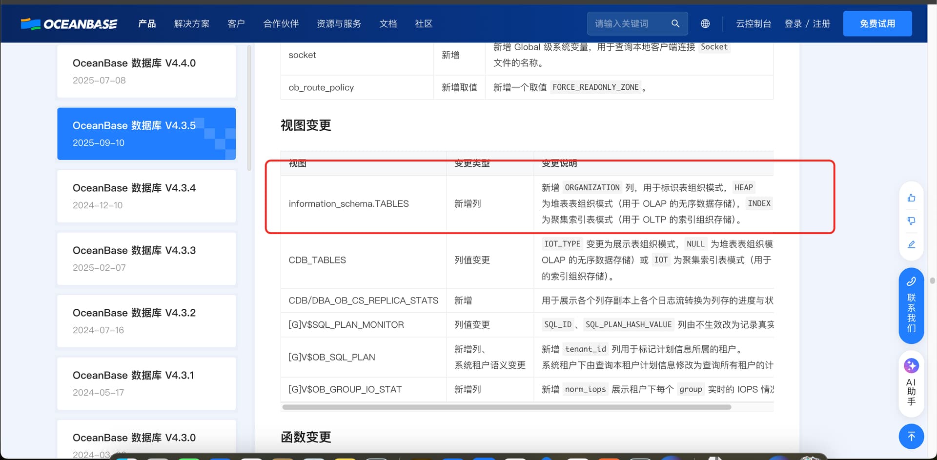 对比了下,企业版的4.3.5.1 information_schema.tables 的确没有“ORGANIZATION” 这个字段