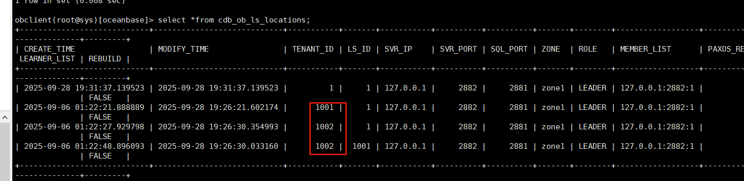 您会发现 每个租户还有个 1号日志流 和 1001 日志流