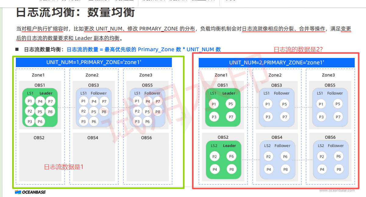 日志流数量=Primary zone * Unit num,左侧和右侧的日志流数量计算是对的。