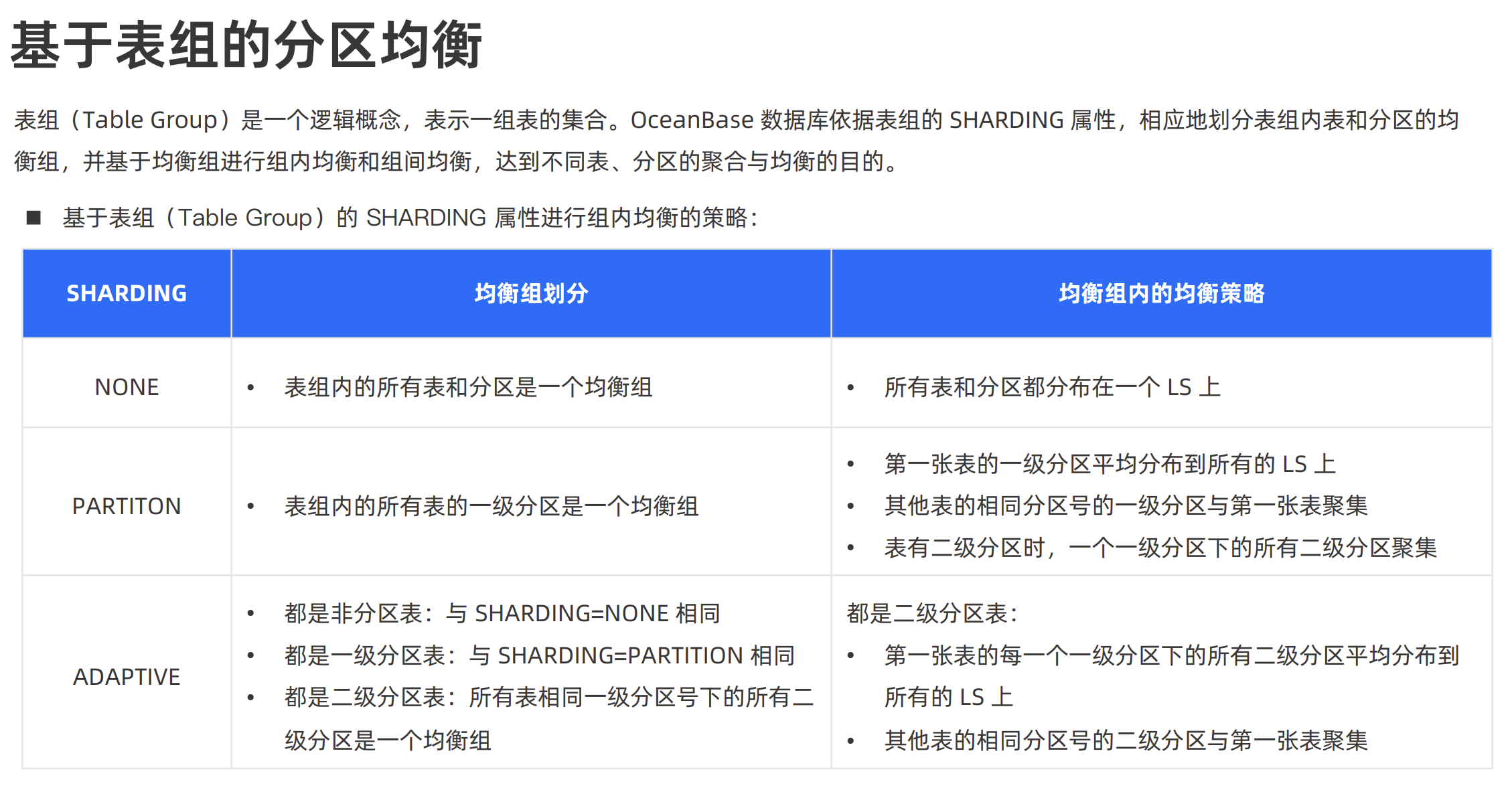 根据 OceanBase 数据库的官方文档,当表组(Table Group)的 SHARDING