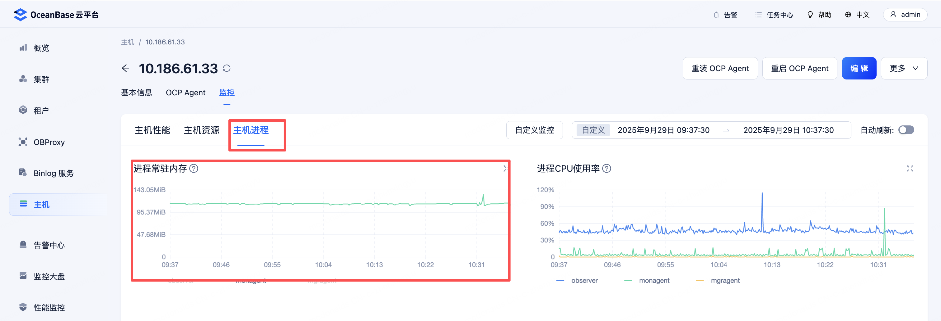 咨询下OCP页面中的monagent的内存占用的历史数据有没有其他获取方式,我集群比较多,几十个,经常内存占用过高,想写个脚本或查询数据库的方式看峰值出现的时间和最大值。找了下ocp_monitor库,没找到存放在哪张表