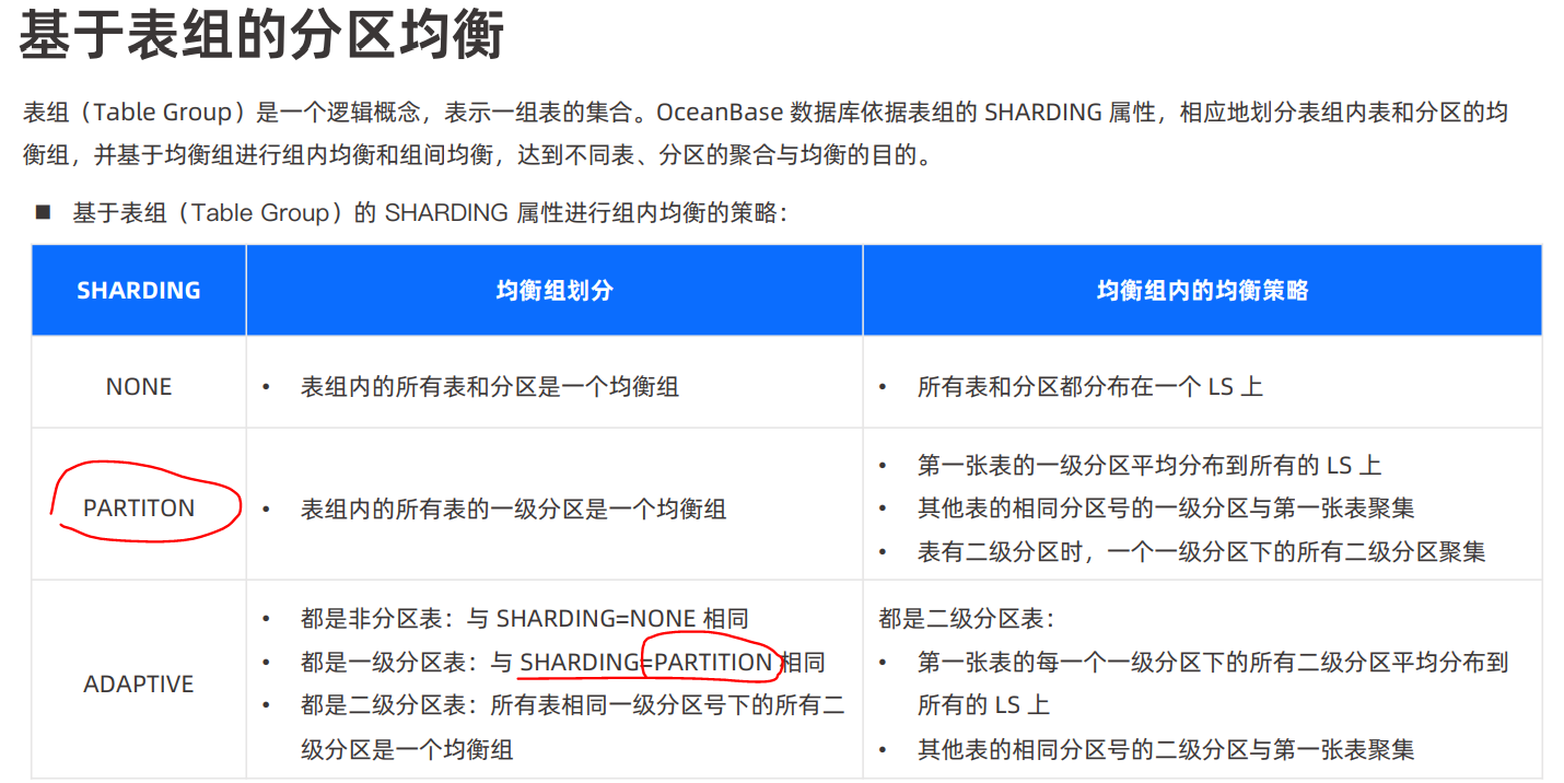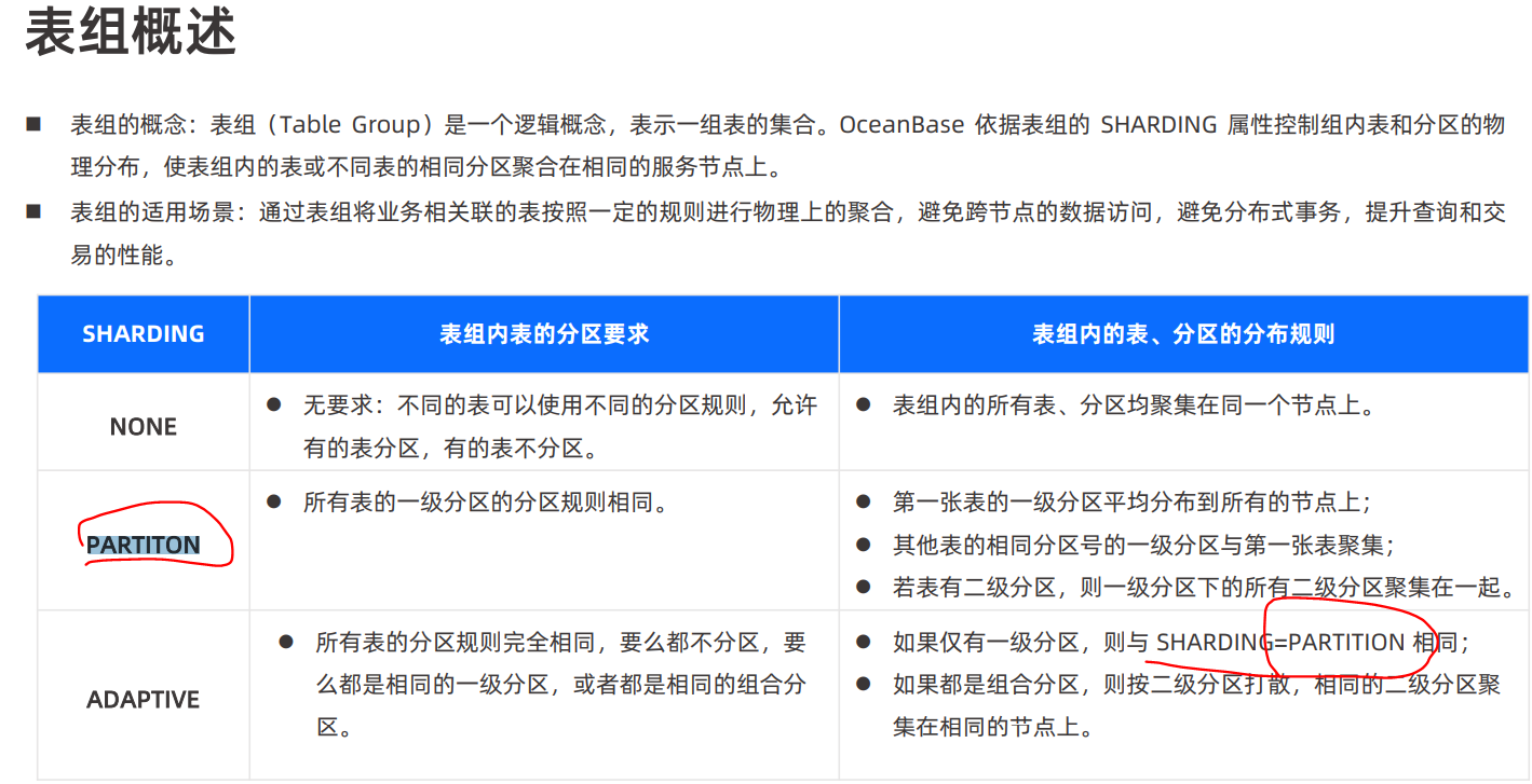 obclient [test3]> CREATE TABLEGROUP tbg1 SHARDING=‘PARTITON’;