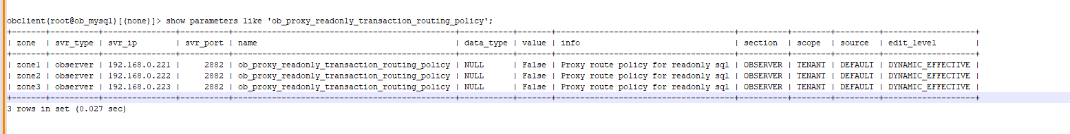 ob_proxy_readonly_transaction_routing_policy参数配置情况如下