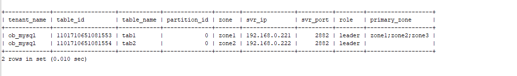 obclient -uroot@ob_mysql -p -P 2883 -h 192.168.0.221