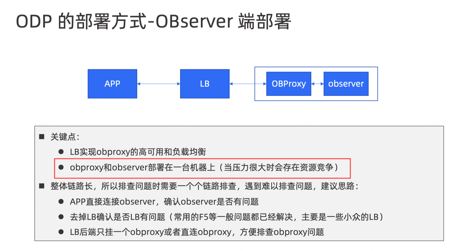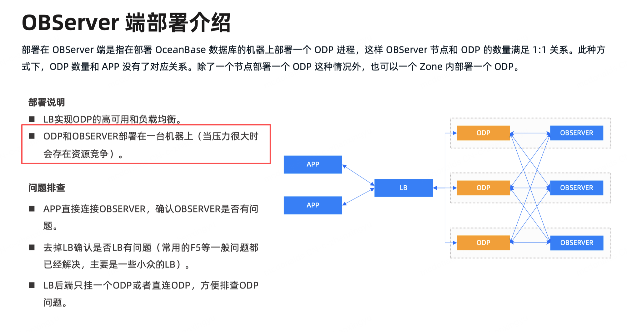 以下关于ODP集群部署在OBServer 端,说法正确的是: