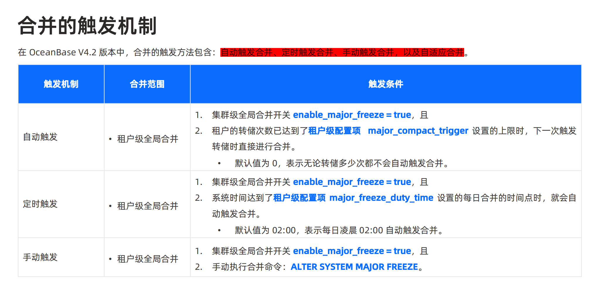在OceanBase数据库中,以下哪一种不属于触发数据合并的操作?
