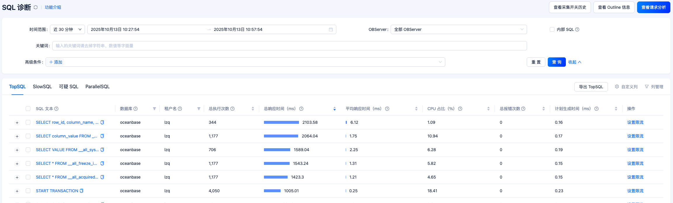 使用OceanBase的Outline功能,对特定的高频SQL实施并发控制。
