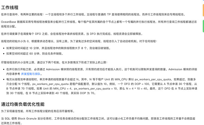 SQL 使用 Partition Granule 划分任务时,可以通过让任务数是工作线程数的整数倍来优化性能。这适用于 Partition Wise Join 和并行 DML 场景。