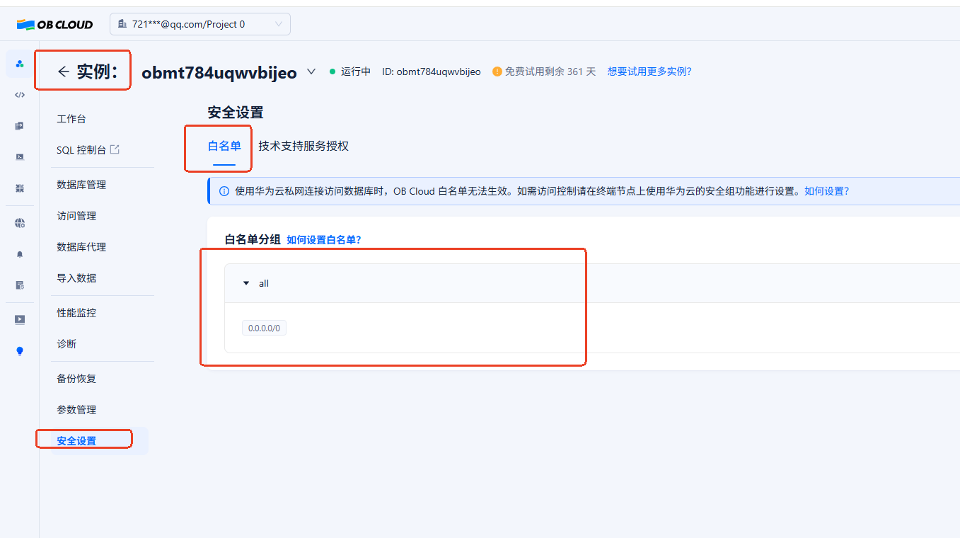 Connected to obmt75gua5jzyl5s-mi.aliyun-cn-hangzhou-internet.oceanbase.cloud.