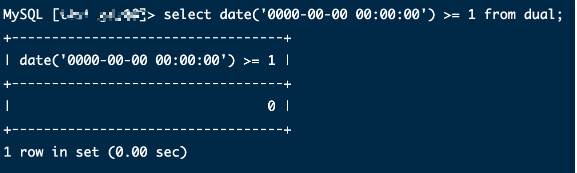 SELECT c1 = DATE'0000-00-00' FROM t1; -- actual: {1}, expected: {0}