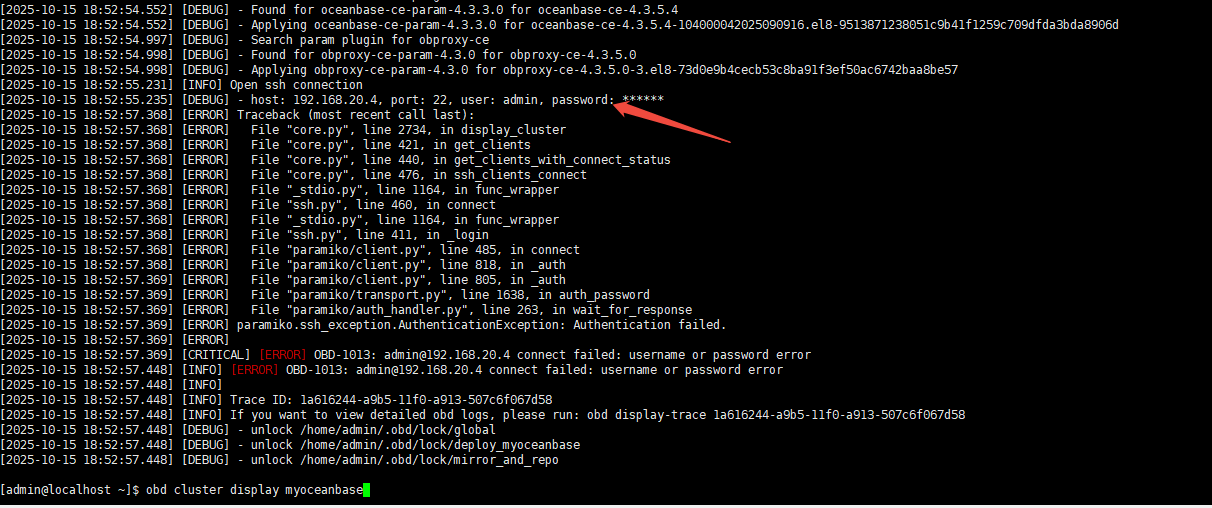 4.修改admin密码后 执行obd cluster display myoceanbase 会报错在ob-dashboard里能修改admin的用户密码吗?或者在哪里能更新密码