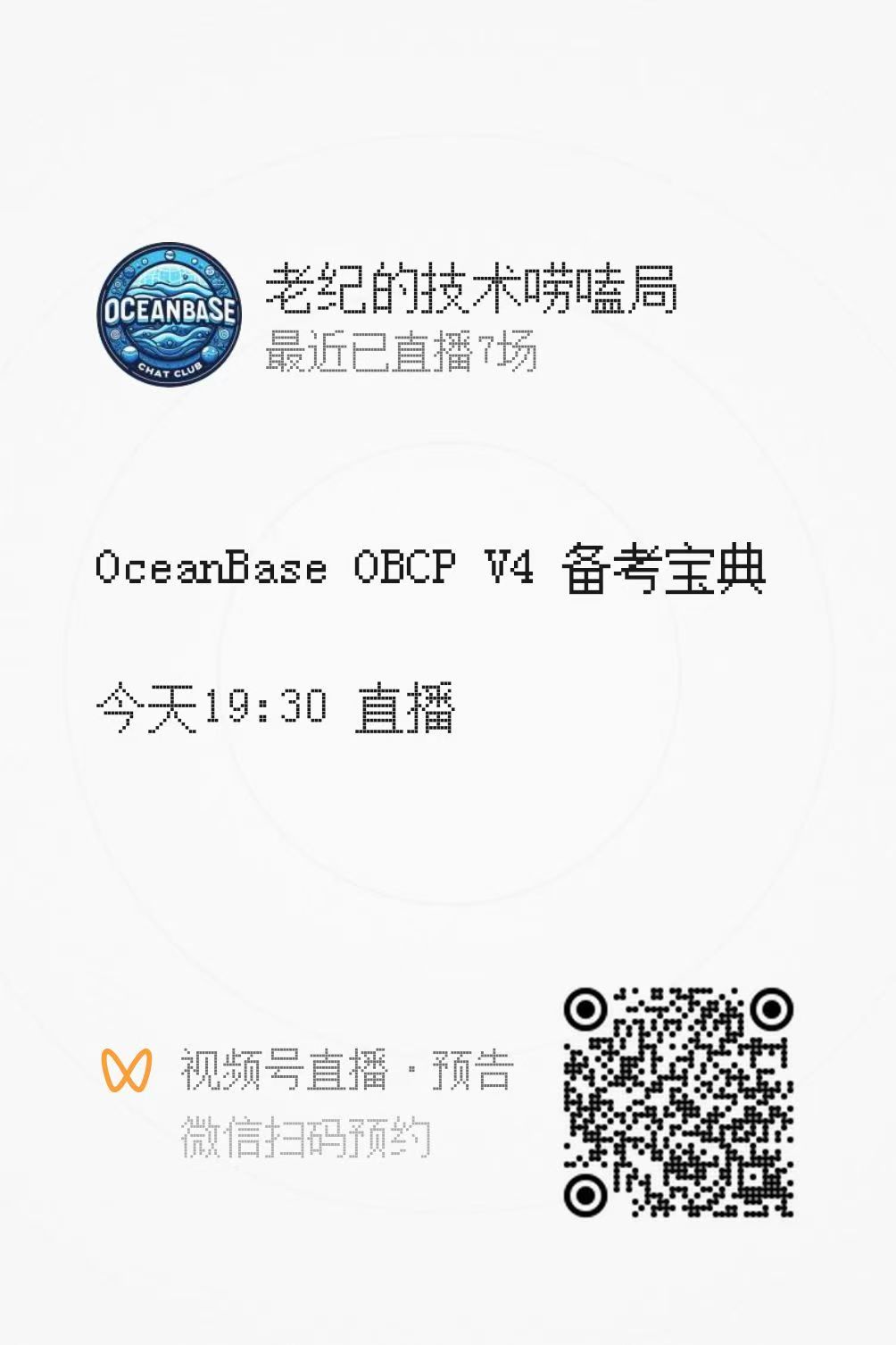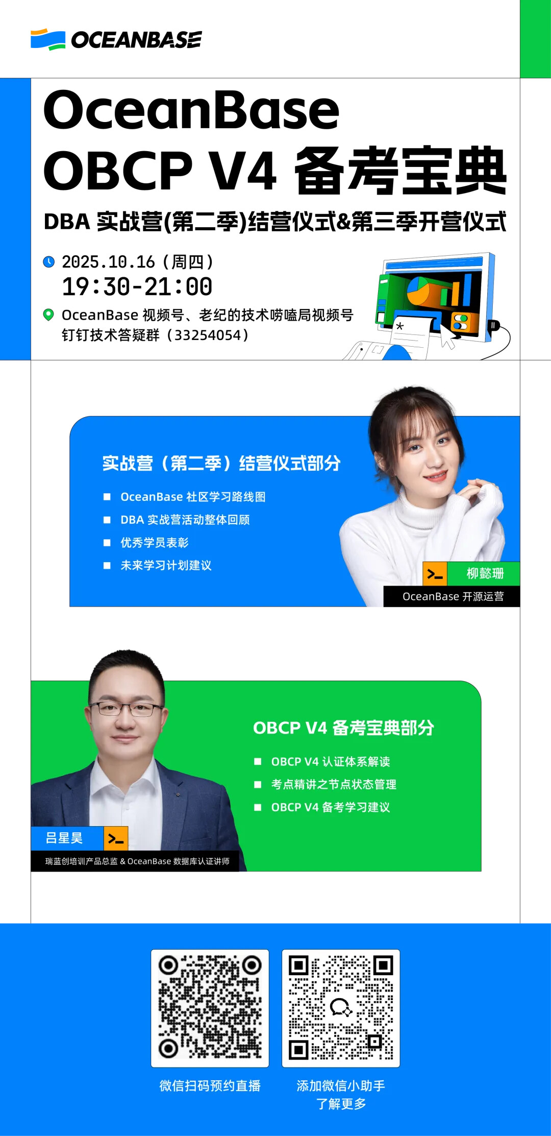 2025/10/16 周四晚 19:30,OceanBase 社区会在 “老纪的技术唠嗑局” 视频号中,为大家直播 DBA 实战营(第二季)的结营仪式和第三季的开营仪式。