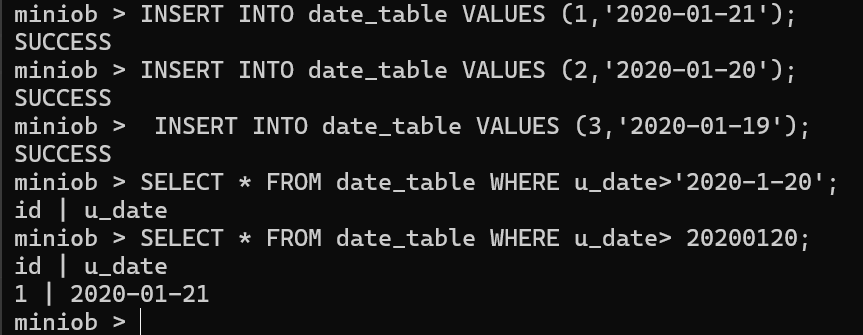 按照教程视频一步步实现的,但是为什么比较的时候用整数类型的形如YYYYMMDD的值比较就可以成功,但是使用形如‘YYYY-MM-DD’的参数传进去比较就不成功,我已经实现了CHARS到DATES的转换函数但是还是不对,求大佬解答我是新手