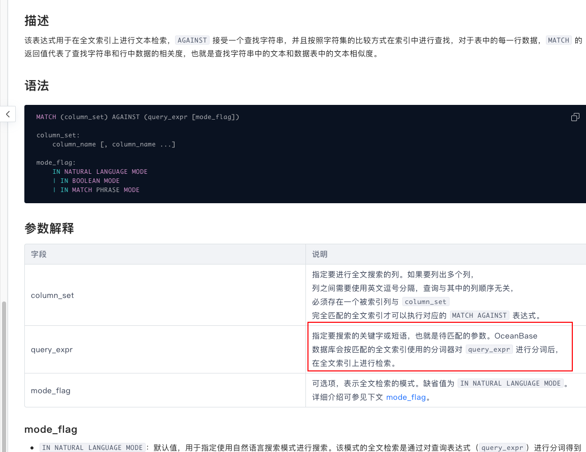MySQL 语句:select t.id_value from sys_core_tag t where t.table_name=‘sys_vehicle’ and MATCH(t.who_can