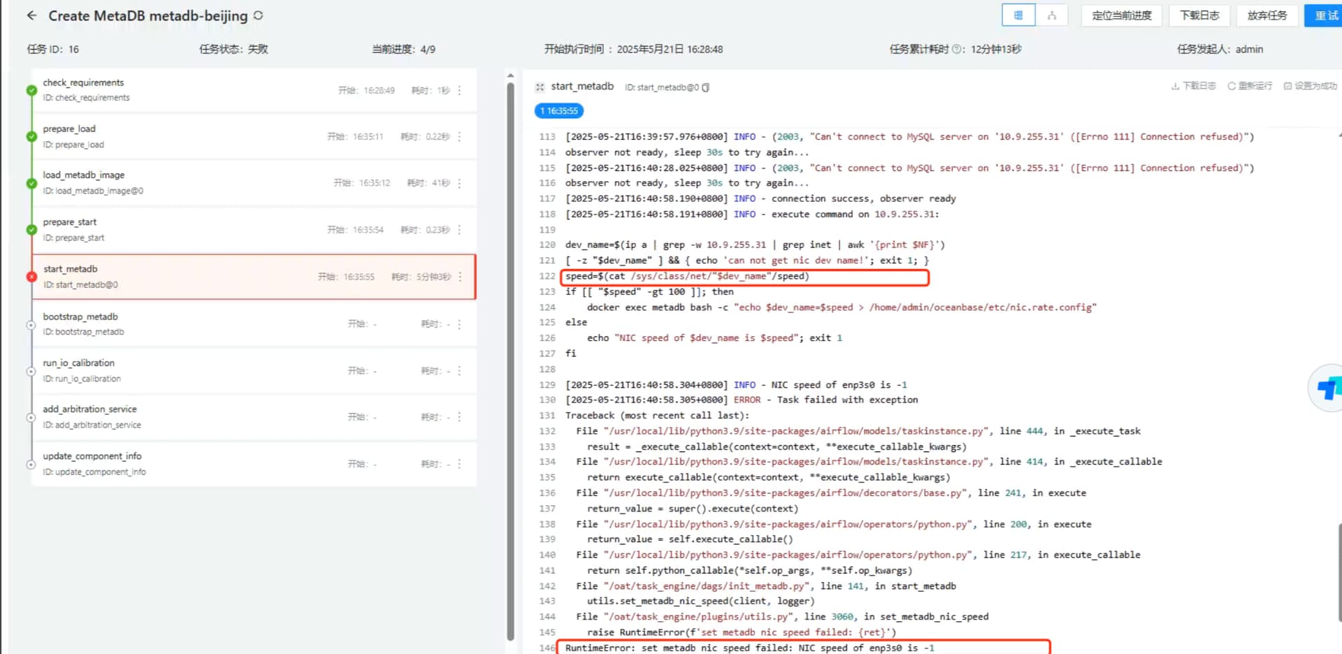 ◦RuntimeError: set metadb nic speed failed: NIC speed of enp3s0 is -1