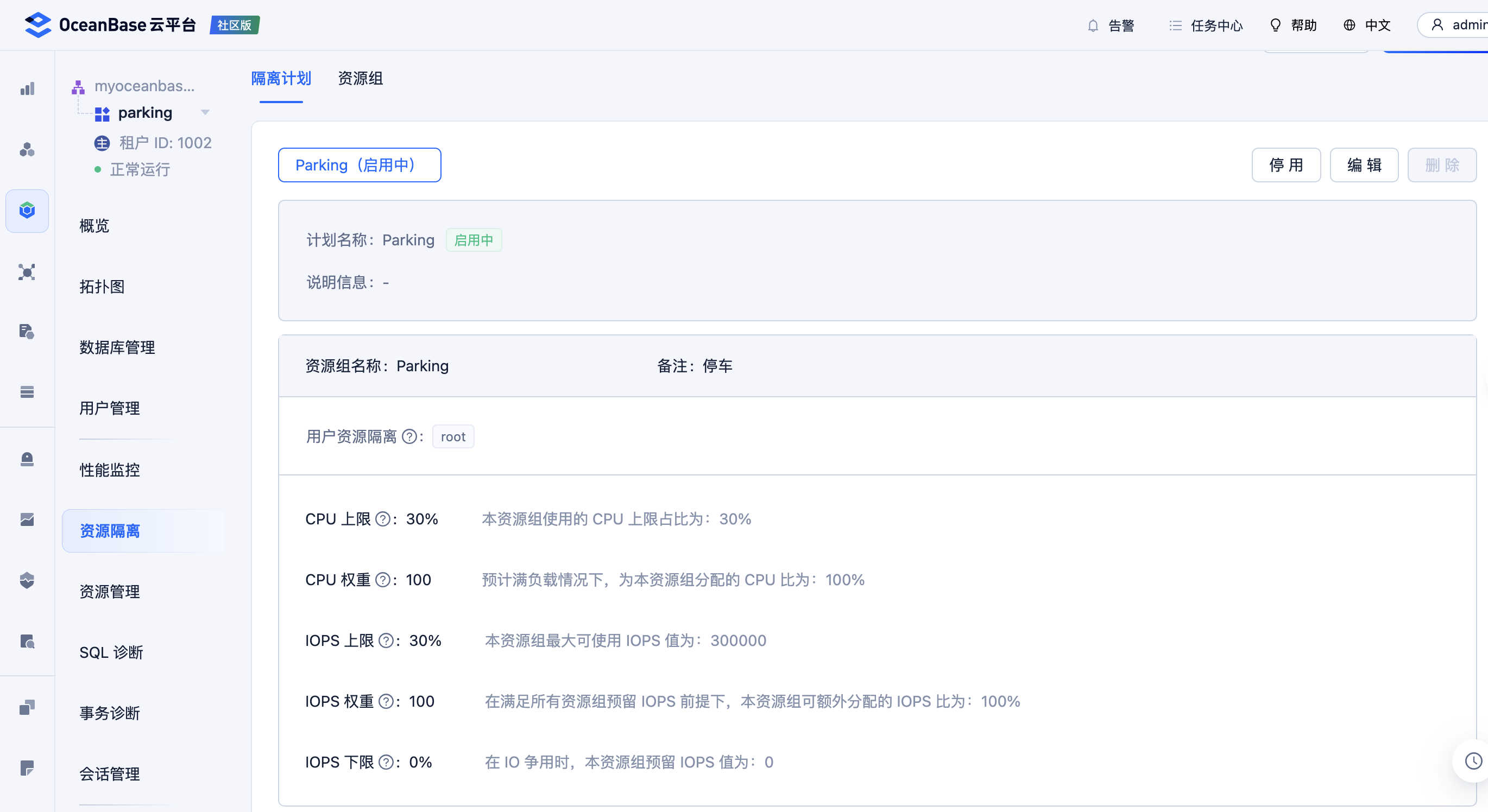 obclient(root@parking)[oceanbase]> SHOW PARAMETERS LIKE 'enable_cgroup';