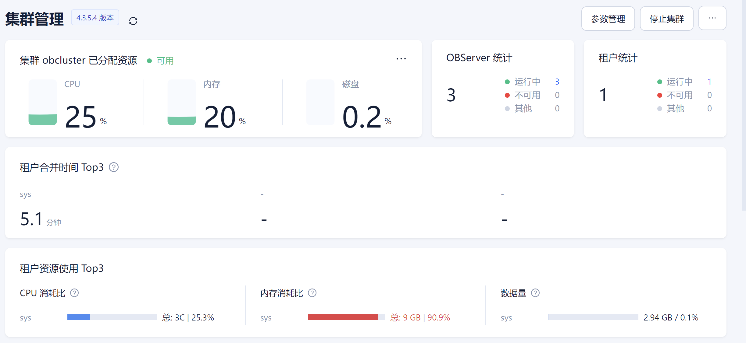 请教一下,虚拟机都是4核16G内存,memory_limit=12G,为什么内存占20%,租户sys内存消耗比90%,看不出服务器内存够用还是不够用呀,需要调整参数吗,哪位大神受累指点一下