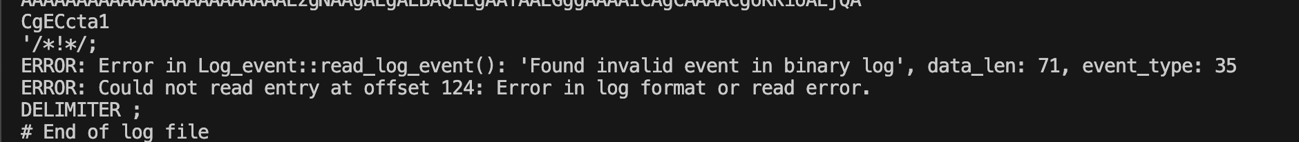 mysqlbinlog Ver 3.3 for Linux at x86_64
