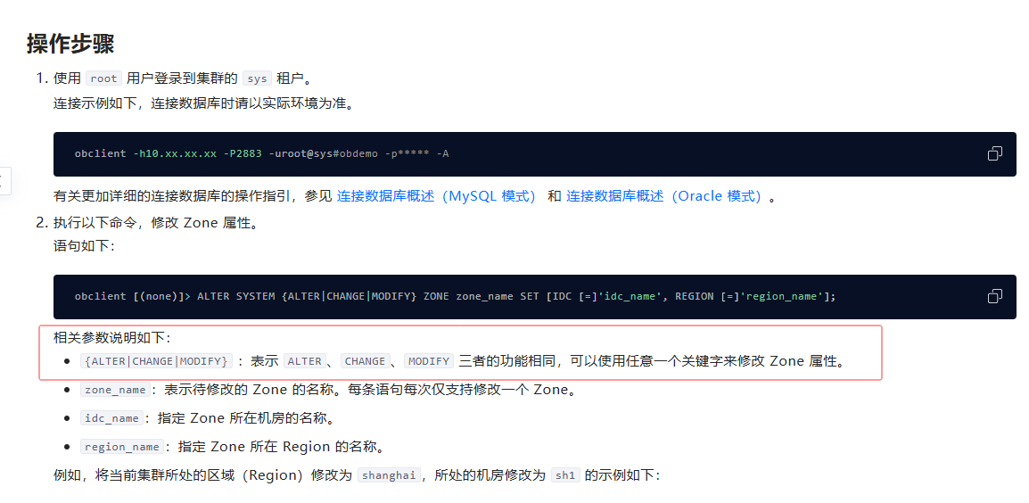 alter system alter|change|modify zone,这3个命令都可以修改zone的regin、idc属性,谁能解释一下有什么区别吗?