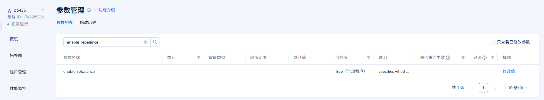 集群用ocp 管理的 enable_rebalance 参数配置中显示的 true (应该是全局的),