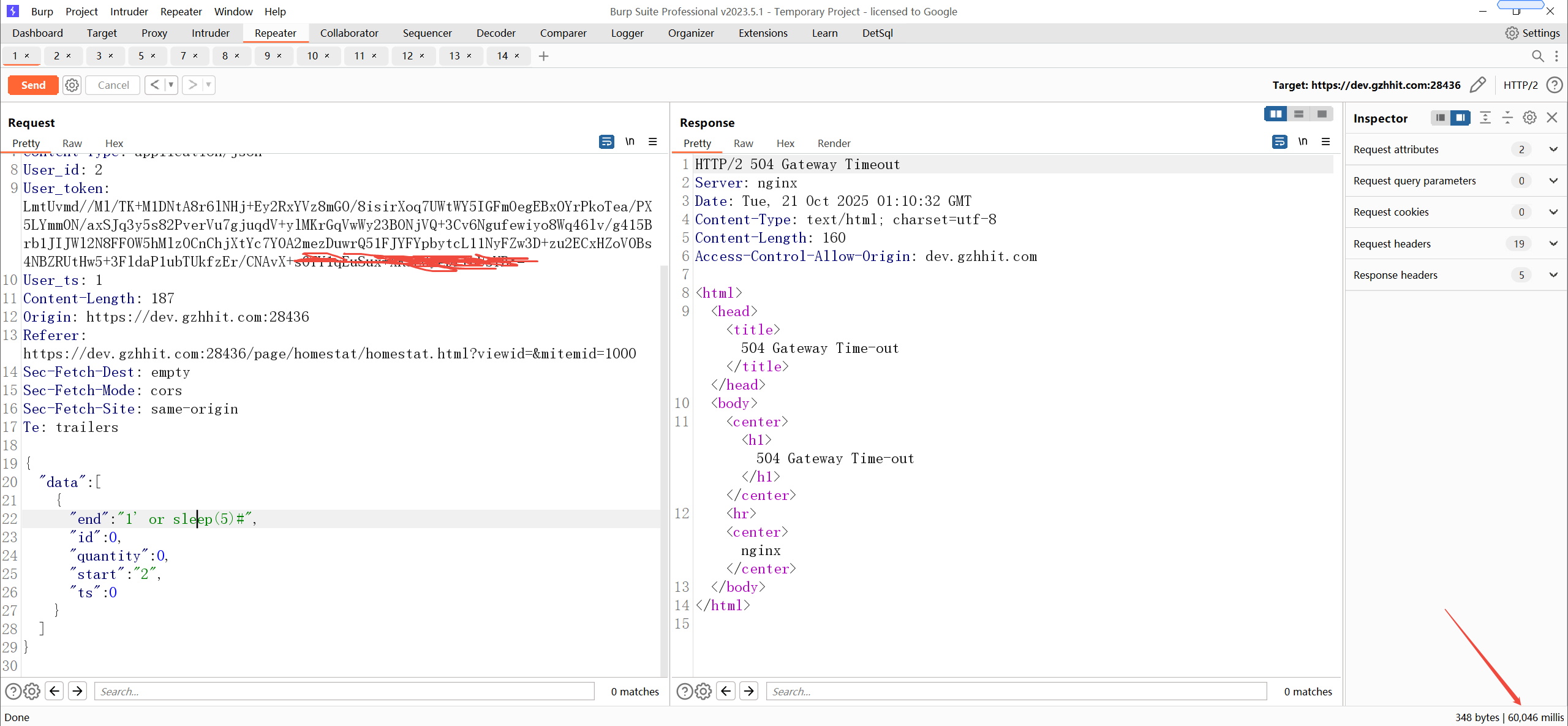 对某一个接口继续sql注入的操作大概三次四数据库就会变慢,而且每次请求都要60秒以后才结束,执行的注入sql为