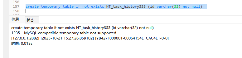【问题描述】4.3.5.1不是支持创建临时表了吗,为什么还会报错?是我这版本问题吗?如果可以创建怎么使用临时表的功能呢,有没有相关的说明呢?