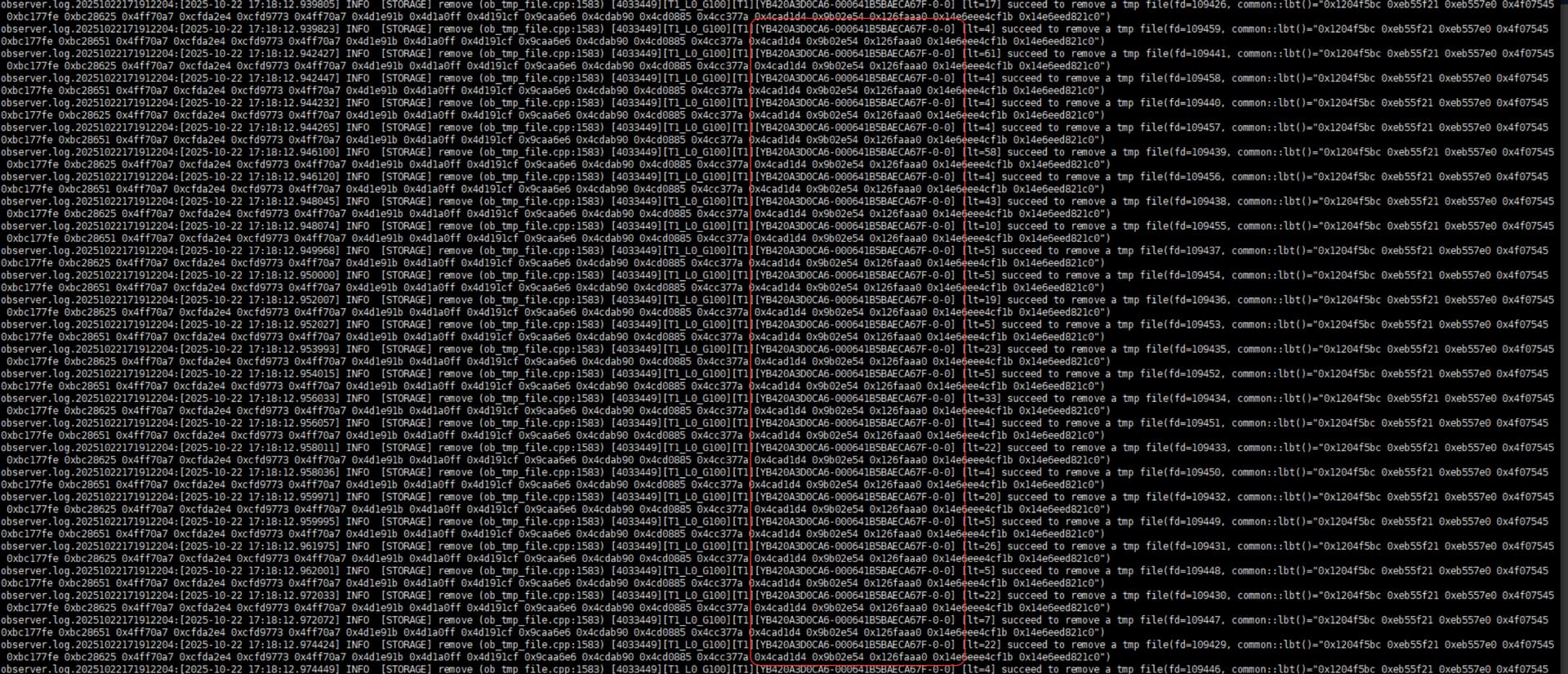 grep 'succeed to remove a tmp file' observer.log*