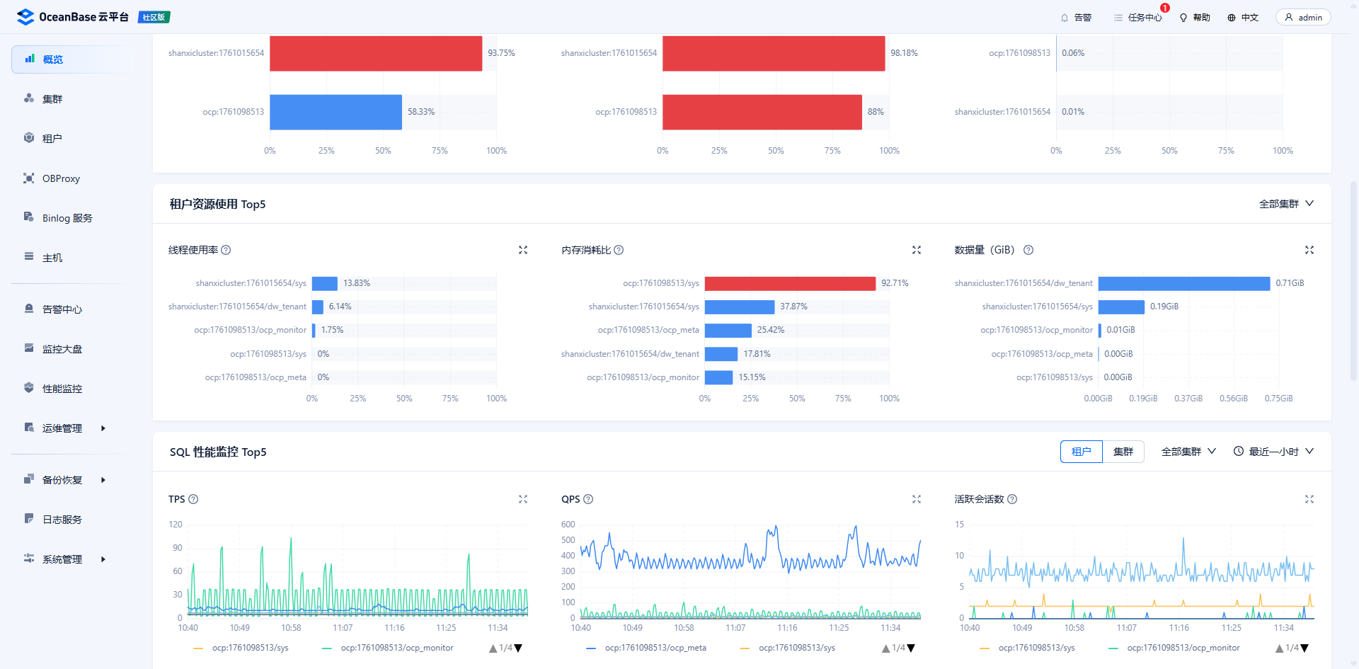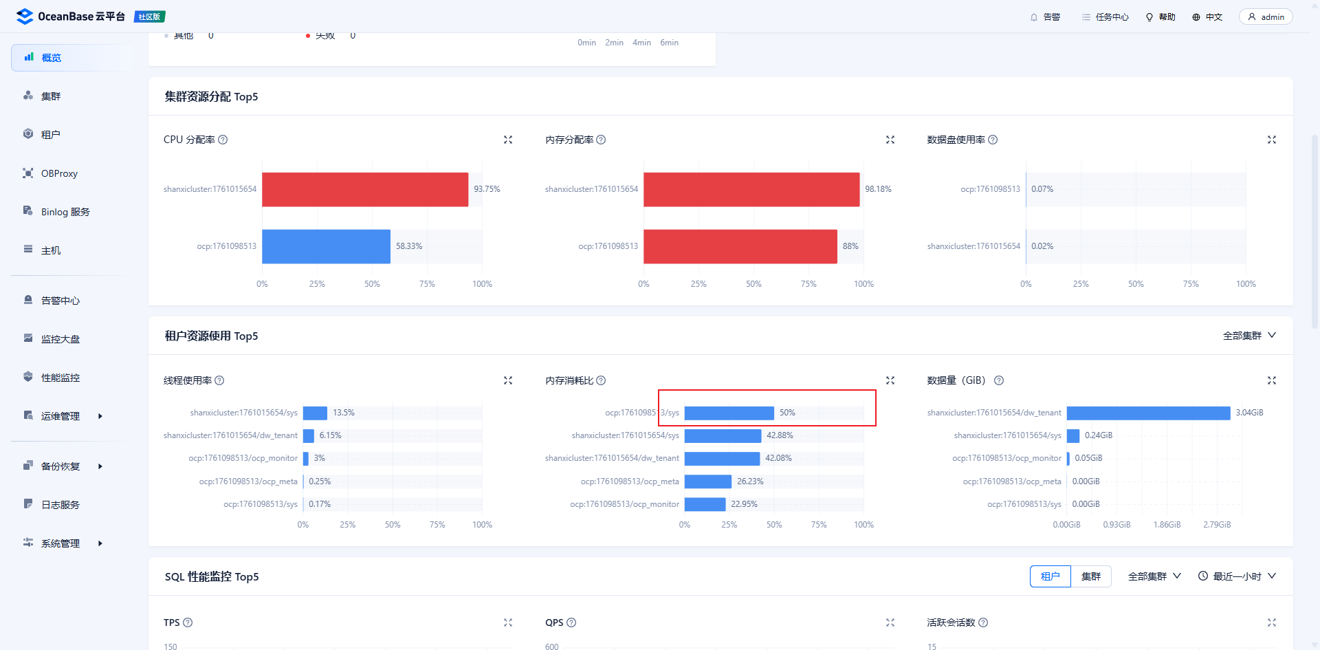 metadb集群 sys租户 查下
