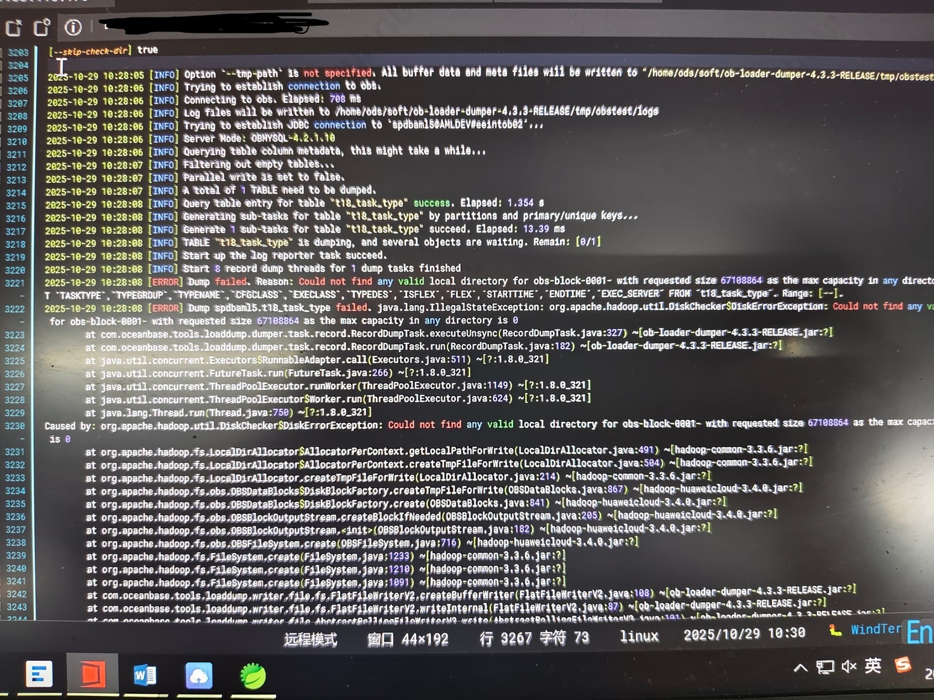 新申请的虚拟机,/tmp目录默认其他用户是只读,目前来看obdumper在导出时即使指定了–tmp-path路径,但还会使用/tmp目录,所以必须将这个目录权限设置到775以上