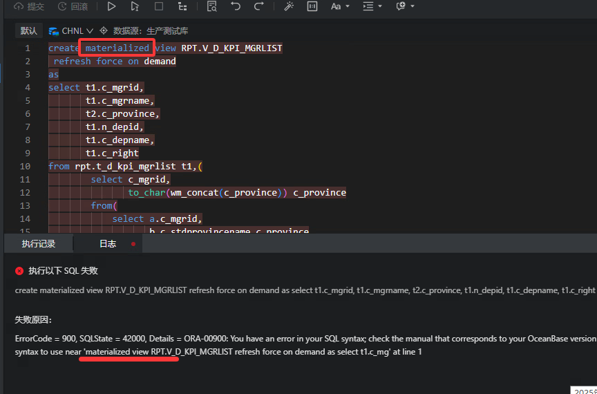 实际 操作就是,创建物化视图报错了,把物化视图关键字去掉就可以。