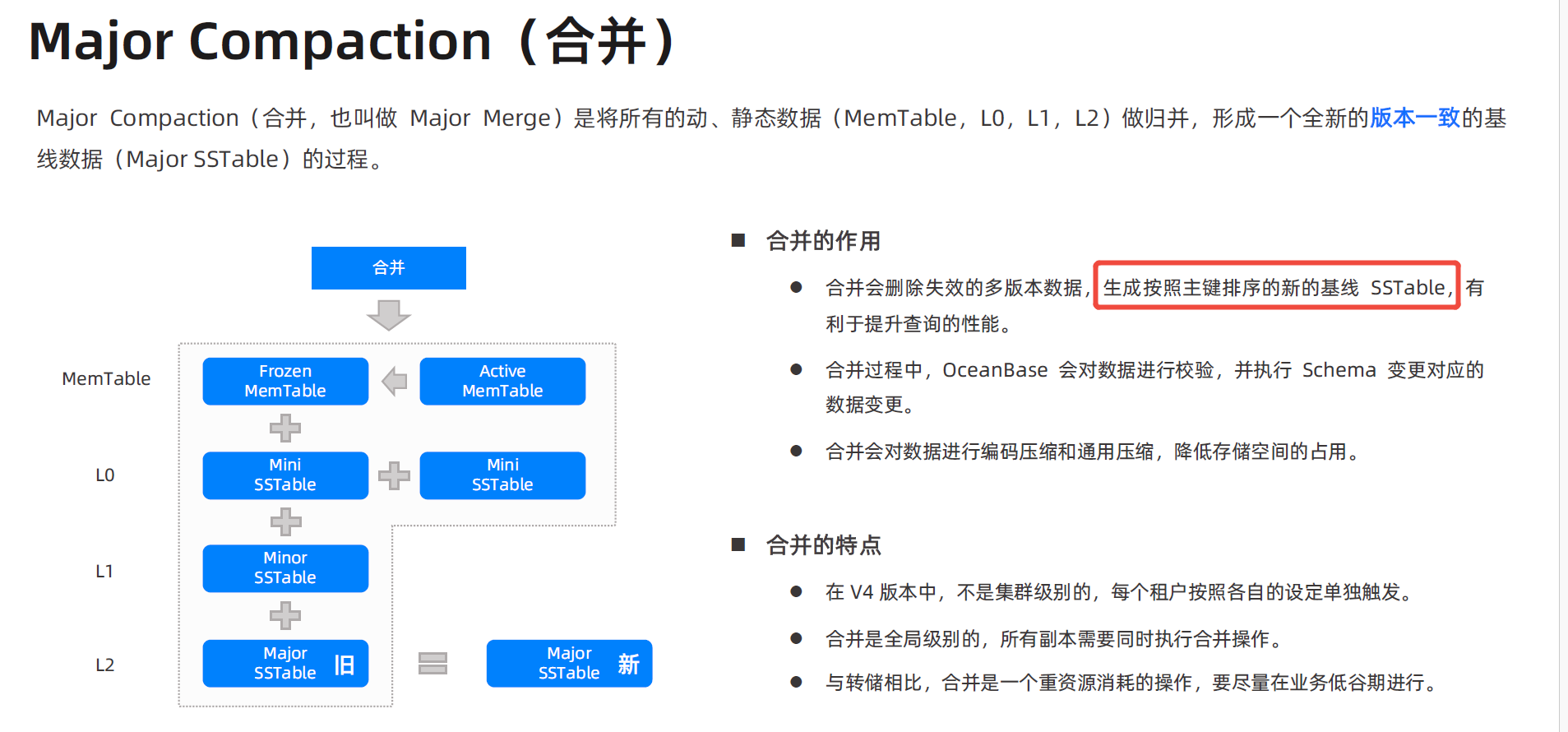根据提供的信息,关于OceanBase数据库中的Major Compaction(合并)机制,可以解答您的疑问如下: