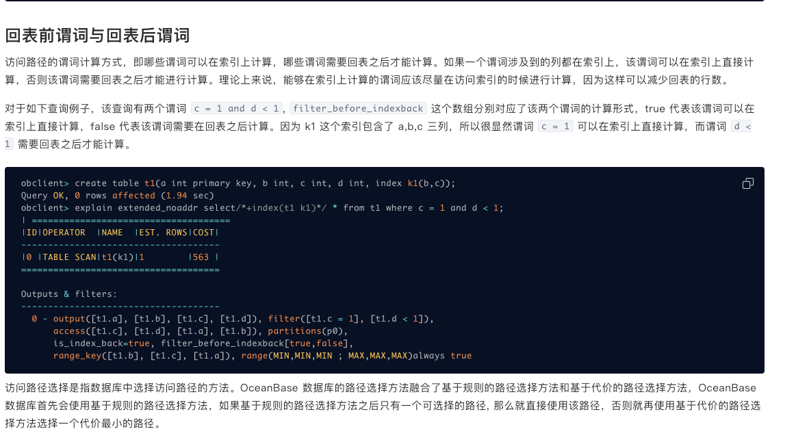 obclient> EXPLAIN SELECT * FROM t1 WHERE c2 < 1 AND c3 < 1 AND c4 < 1;