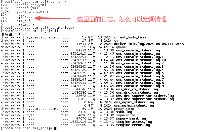 这个oms_logs下 你用du -sh ./* 看看那个文件占的多