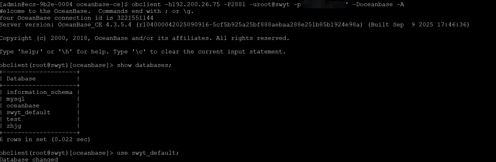SHOW VARIABLES like ‘version_comment’; 查一下ob的版本信息