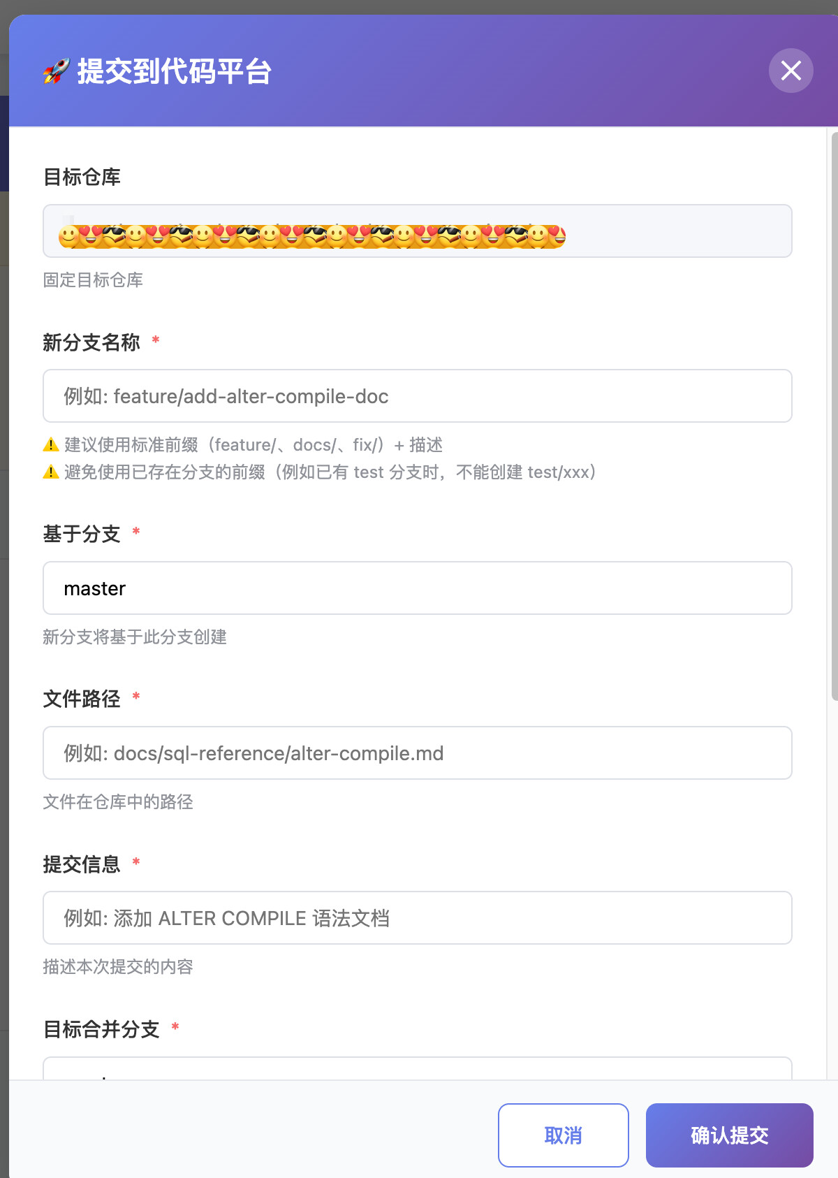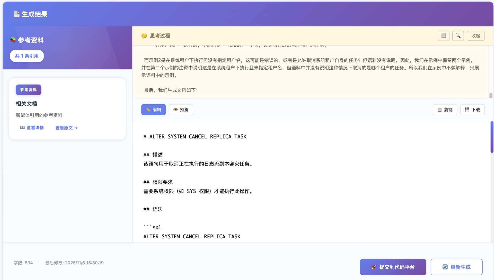 - 支持多种文档类型(SQL、PL、FAQ、视图等)