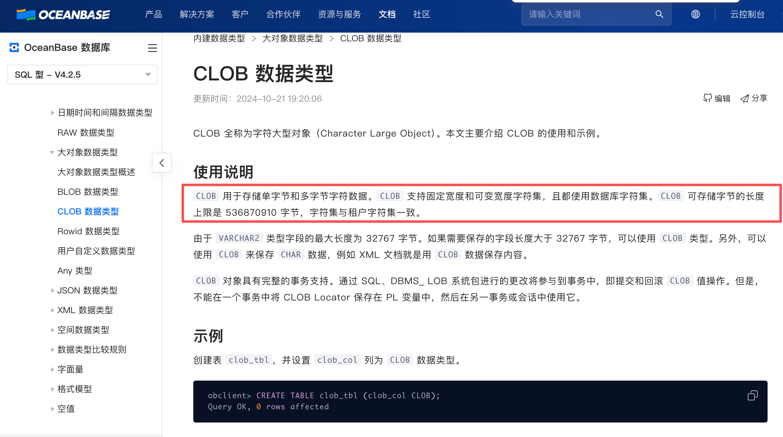 【问题描述】测试环境录入的合同模板有100多页,存储在表字段中,该大字段大于48MB,OMS和ODC的导出工具导出后出现截断问题,尝试OBDUMPER发现不支持OB-ORACLE的4.2.5.6版本,想请教该如何导出同步到生产库?